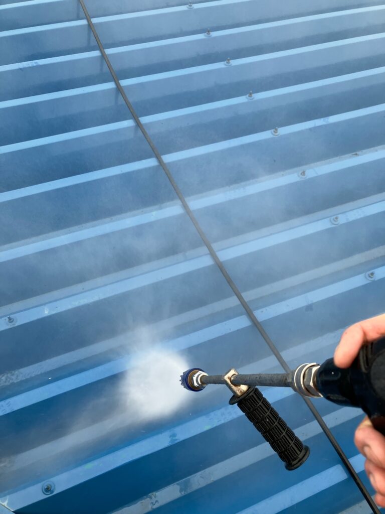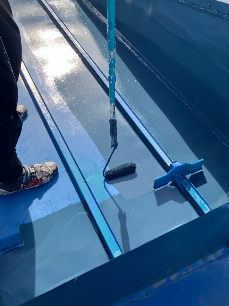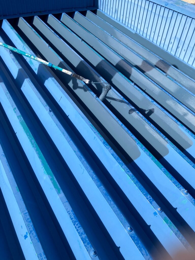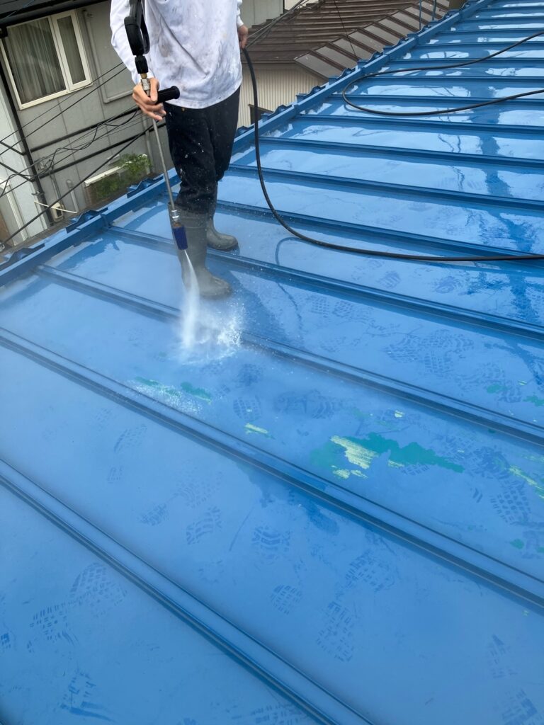 屋根の汚れや旧塗膜を落とし、その後しっかりと乾燥させます。しっかり乾いてない状態で塗装をすると、剥がれなどの原因になるので、注意が必要です。